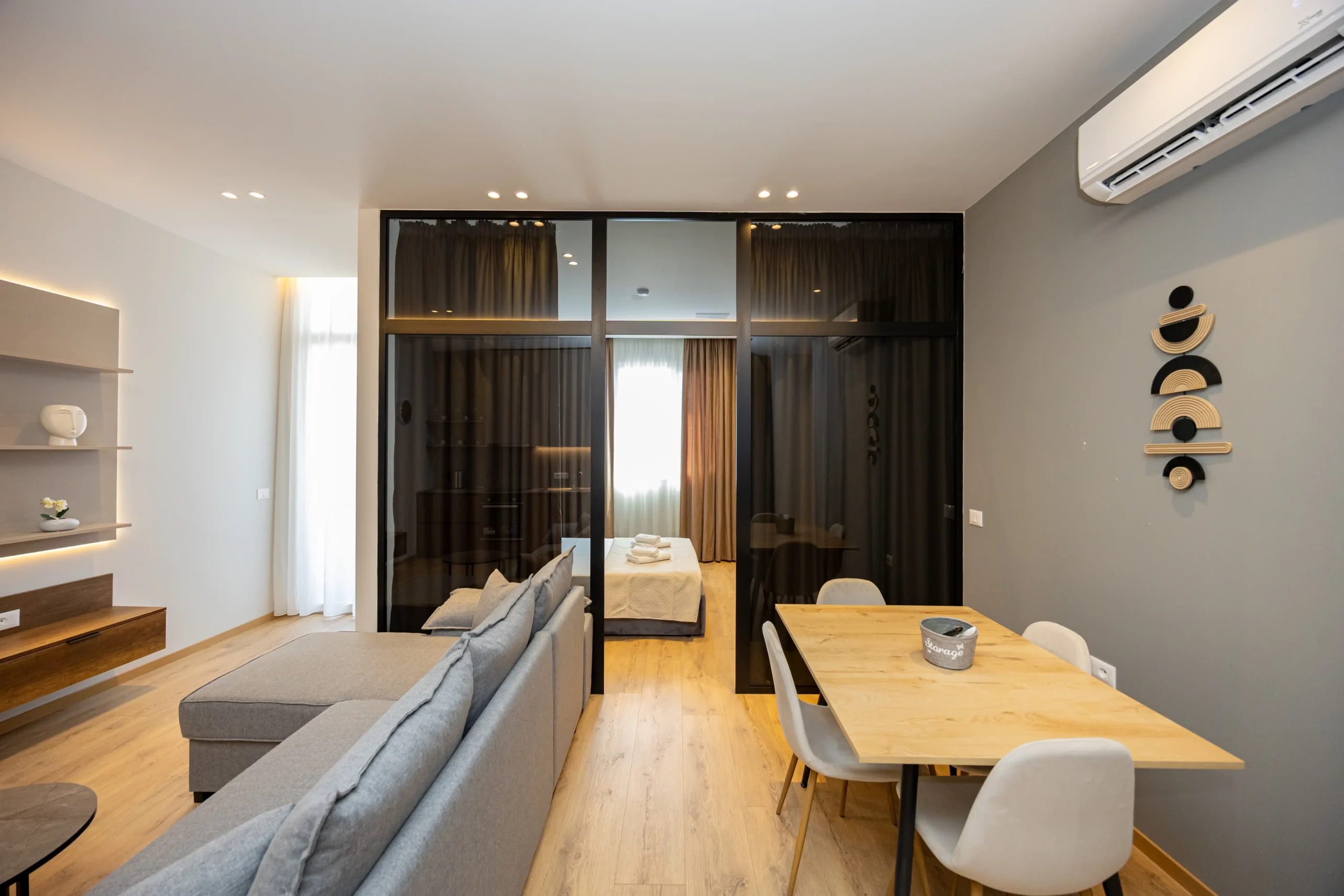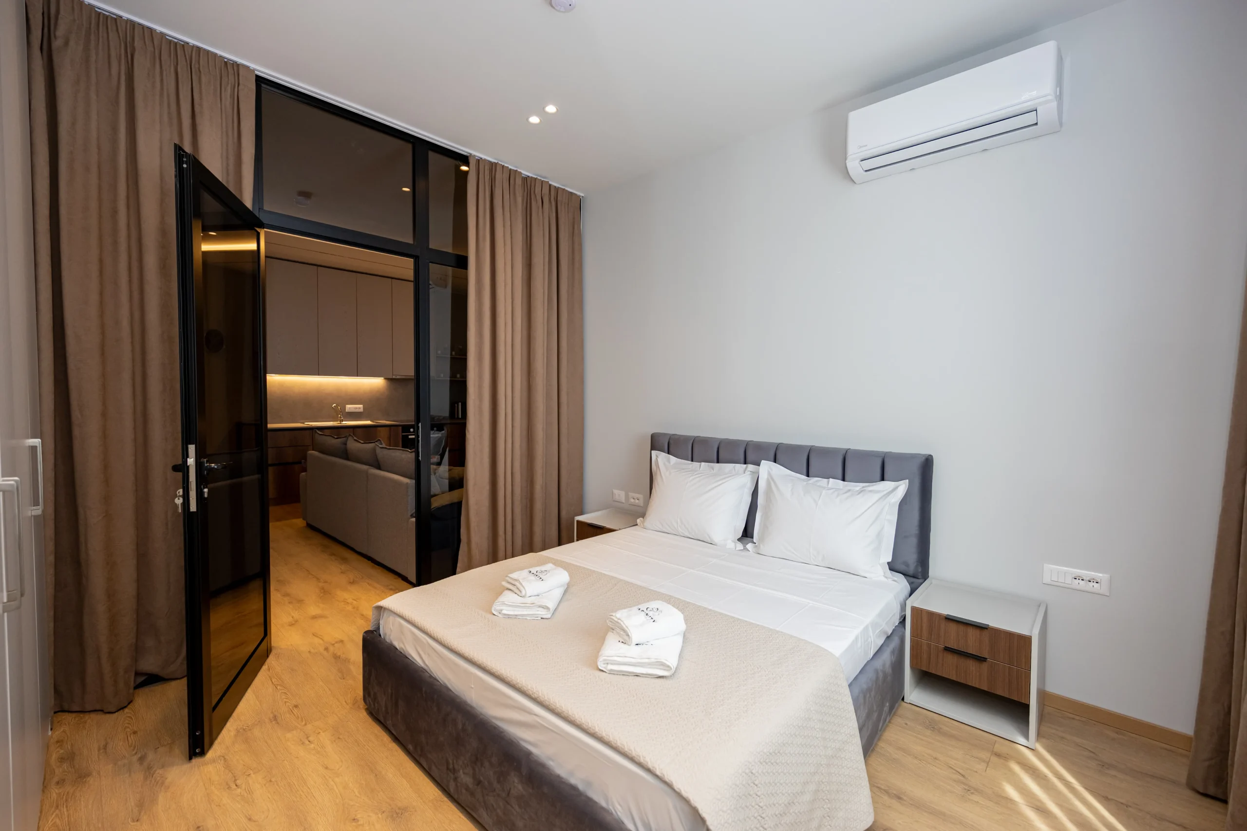 Infinity Apartments offers a modern 1+1 apartment in the heart of Tirana, located on Rruga Panorama. Designed for comfort and convenience, the apartment accommodates up to 3 guests and includes a bright bedroom, a cozy living room, a fully equipped kitchen, a stylish bathroom, and a private balcony with city views — ideal for both short and extended stays.